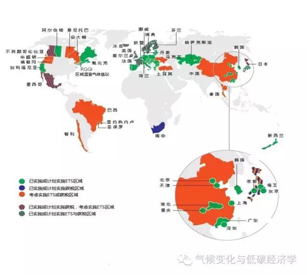 全球碳市场发展渐成主流。39个国家和23个地区已采用或计划采用碳定价(碳市场及碳税)工具。