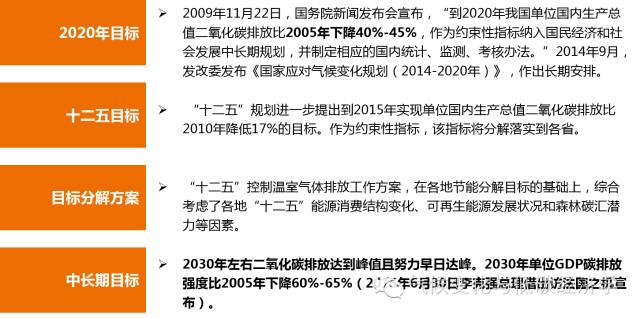 2015年12月联合国气候大会召开前,中国明确提出计划于2017年启动全国碳排放交易体系,第一阶段将涵盖石化、化工、建材、钢铁、有色、造纸、电力、航空等重点排放企业。