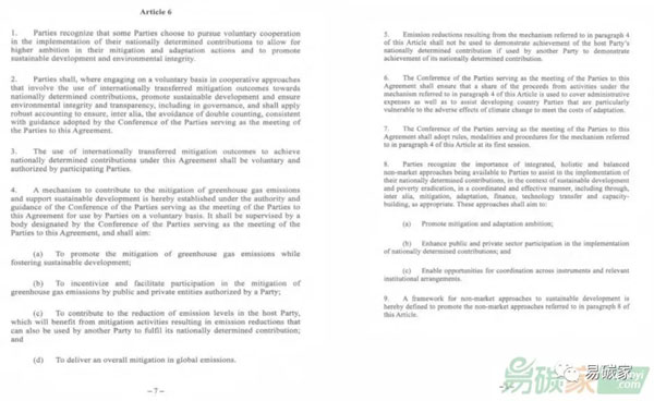 《巴黎协定》第六条的原文如下1: