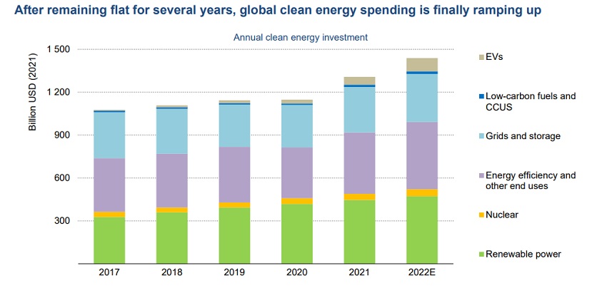 图说:全球清洁能源投资情况(2017-2022E)