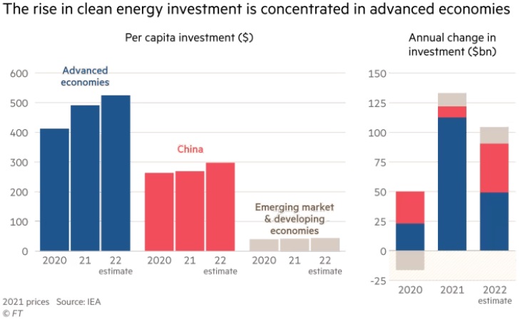 图说:2020-2022年各地区清洁能源投资及其年度变化